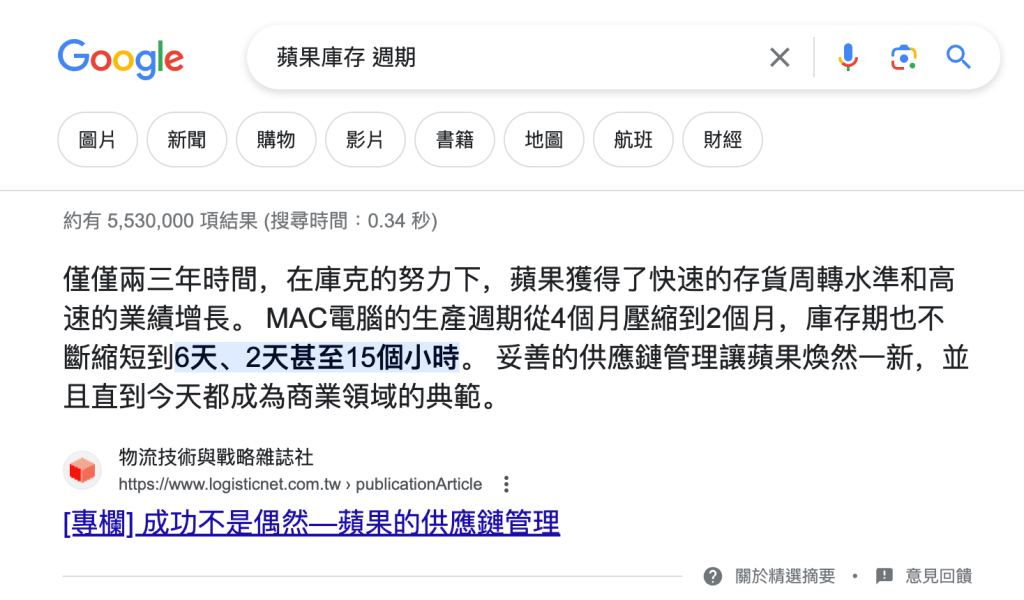 不光是零售業,許多製造業也是如此。蘋果在的供應鍊旁畫出一個區域,將主要零組件供應商的備料都存放在工廠的倉庫。一但要進入組裝時,將需要的備料一到這個區域,才開始進行「進貨備料」,此時的庫存的所有者才從供應商轉為蘋果。有興趣的朋友可以網路搜尋相關文章: